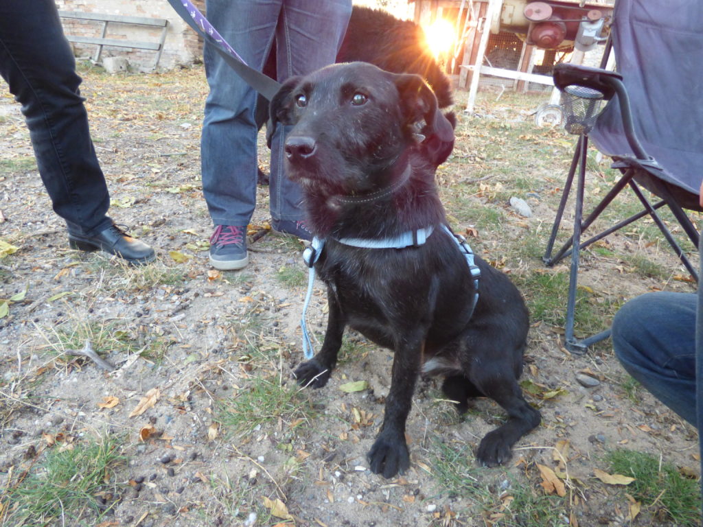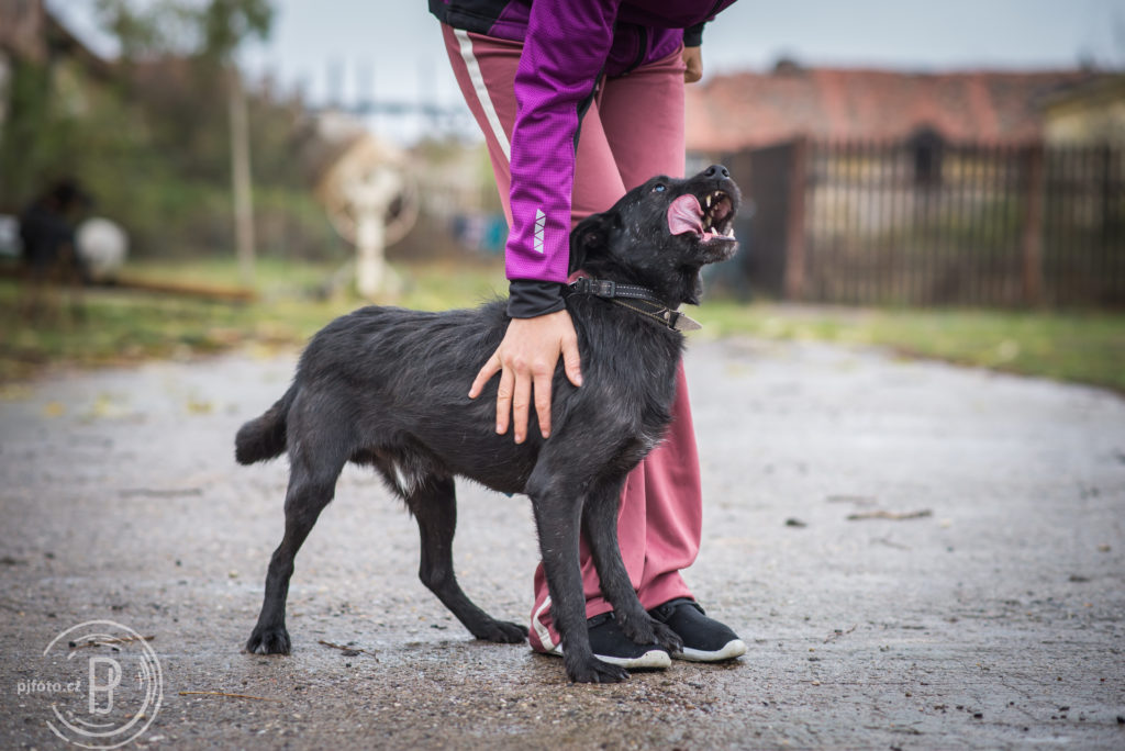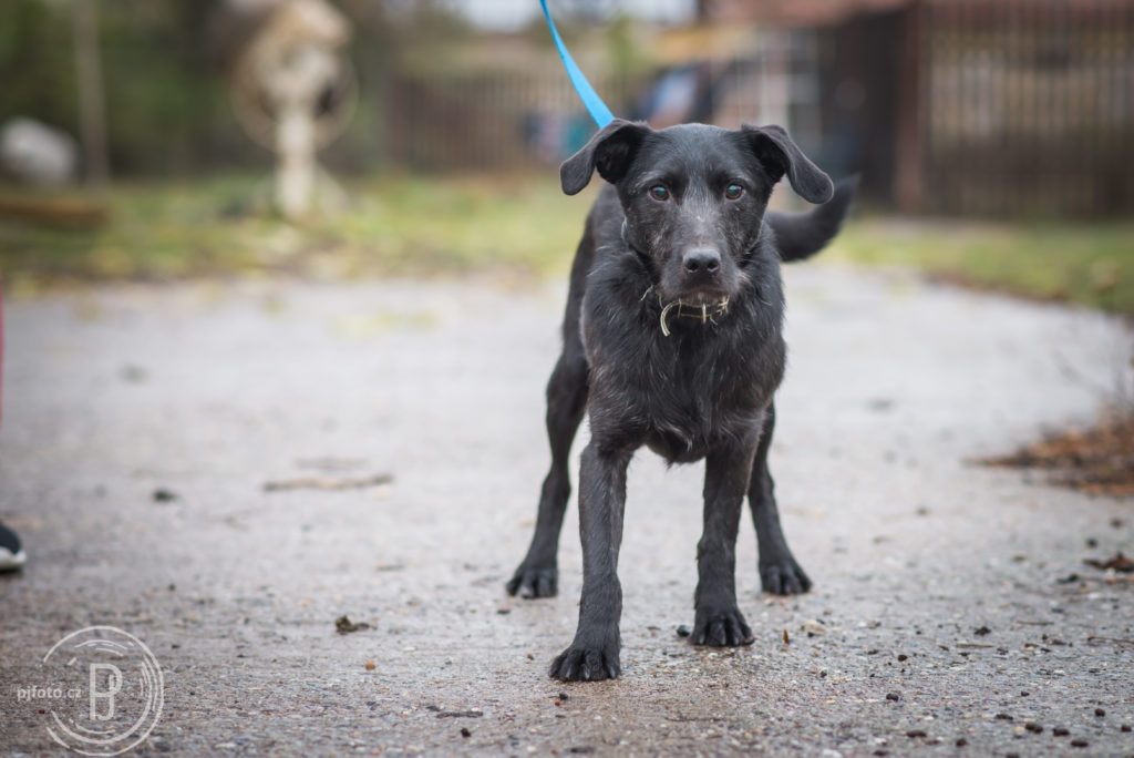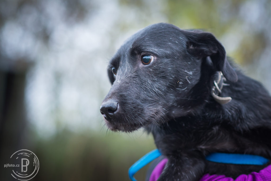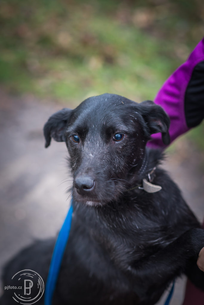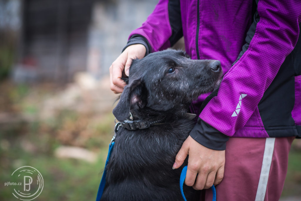 Dostal se k nám před několika lety z naprosto otřesných podmínek množírny, kde se psi křížili mezi sebou a štěňata bez pozornosti vyrůstala v harampádí na dvoře. Koutek se velice bál a víc jak dva roky trvalo získávání jeho důvěry. On je totiž slepý, rozlišuje spíše jen světlo a orientuje se podle čichu, zvuků a dotyků. Je v tom tak dobrý, že to venku na první pohled vůbec nejde poznat, jak si sebevědomě čmuchá a člověku jde do náruče.