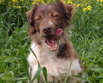 Dostal se k nám z příšerných podmínek, žil v prasečáku s dalšími psy, které tam rozmnožil nezodpovědný bezdomovec. Několik psů tam zahynulo. Všechny zbylé jsme vysvobodili, jednalo se však o psy, kteří nikdy nepoznali pohlazení člověka, velmi se báli a kousali strachy. U Kropáčka to trvalo více jak rok, než jsme si získali jeho skutečnou důvěru. Byl to zázrak, když nás konečně začal vítat a dožadoval se pohlazení. Až nám ukápla slza, nikdy jsme nevěřili, že se tento pejsek nakonec změní. Byl jeden z těch nejhorších a dnes je k nepoznání. Vítá, mazlí se, miluje nás. Venku už to zvládá v pohodě, rád čmuchá, je čistotný, začal si vesele hrát. Větší jistotu má se svými psími kamarády. Dělá nyní pokroky mnohem rychleji. Hledáme mu proto někoho, kdo s ohledem na jeho minulost a zabezpečí ho, pokud by utekl, byla by celá práce zmařená stejně jako život pejska, který by se vyděšený nedal již od nikoho chytit a umřel by. Proto bychom rádi našli někoho zodpovědného, který by si ho vzal například s kámošem Koláčkem, nebo už má doma hodného pejska. Kropáček bude rád na zahradě, bude mít jednoho páníčka, ke kterému si vybuduje důvěru a dožije spokojeně. Může samozřejmě chodit postupně i na procházky, jde mu to 🙂