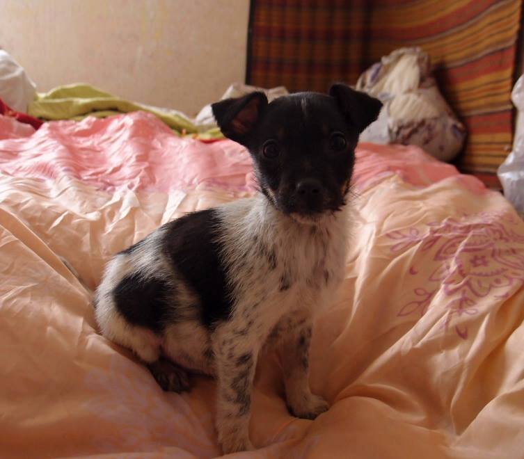 Tato štěňátka někdo odložil za dveře veterinární kliniky v krabici. Toto štěňátko hledá již nový domov, je to kříženec, v dospělosti odhadem kolem 10 kg váhy, přesně se určit nedá. Je aktivní, hravé, veselé, vhodnější k baráčku, k dalšímu psovi, zkušenému aktivnímu člověku, který ho zaměstná, bude s ním provozovat nějaký sport a zabaví ho, aby se necítilo osaměle. Jinak mazlík, už zvyklí na lidský kontakt, ale vše ostatní se musí ještě naučit. Teď má teprve dokončenou veterinární péči, bylo strašně hubené , zablešené, začervené a evidentně z prostředí, kde se o štěňata nikdo hezky nestaral. Teď už je v pořádku